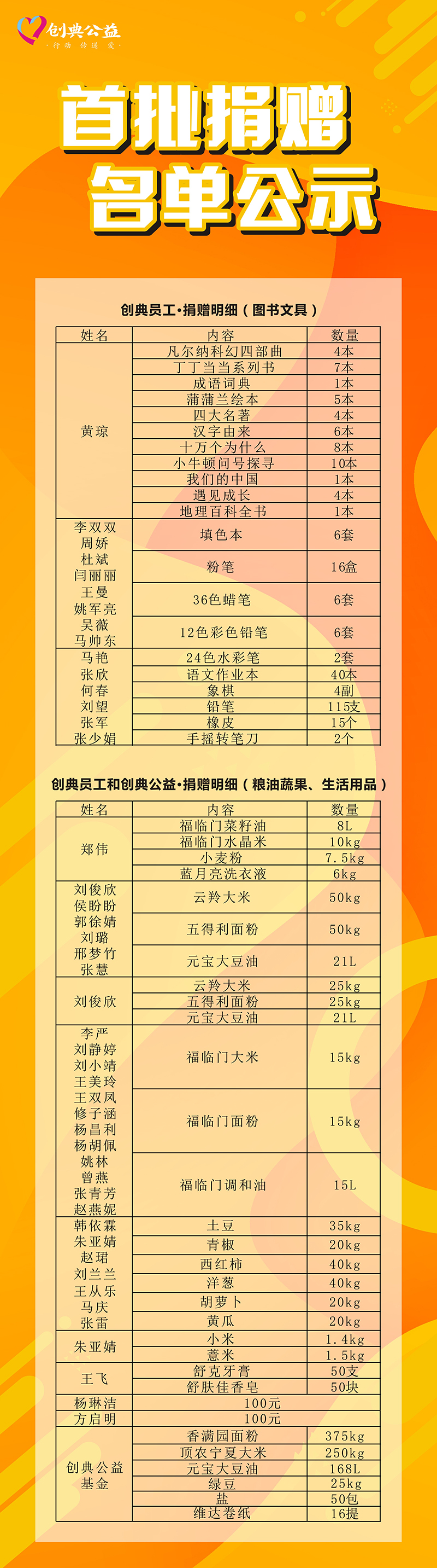 暖阳行动 感恩有你 首批捐赠名单公示
